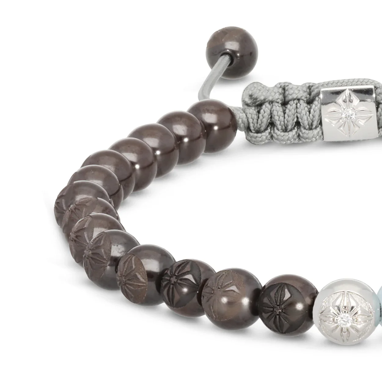 The 6mm SHAMBALLA® Non-Braided Bracelet showcases a refined combination of G/Vs Diamonds, Milky Aquamarines, Brown Ceramic, and Platinum. Finished with a Silver color string, this bracelet offers a perfect balance of luxury, elegance, and contemporary design.